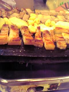 で、でてきました。斜めの石のような板に肉がどかんと。すごいす。